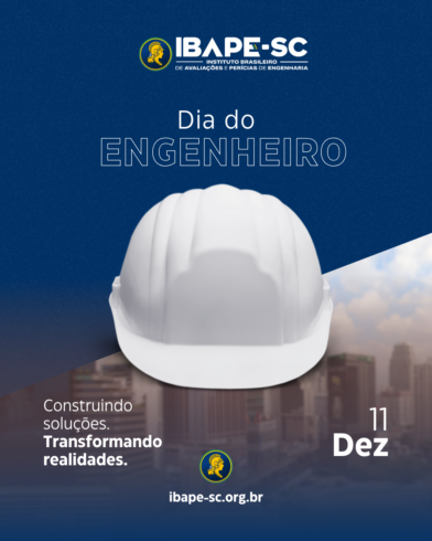 Dia do Engenheiro 11 de dezembro de 2025 | Geral Neste Dia do Engenheiro, celebramos aqueles que transformam ideias em soluções e constroem um futuro mais seguro e inteligente. O IBAPE-SC parabeniza todos os engenheiros pelo compromisso e pela dedicação!
